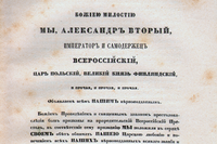 На фото: манифест об отмене крепостного права; Александр II.