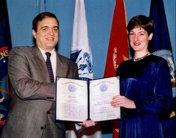 На фото: Ана Белен Монтес; Ана Монтес получает «Сертификат отличия» из рук Джорджа Тенета, директора Центральной разведки и главы ЦРУ.