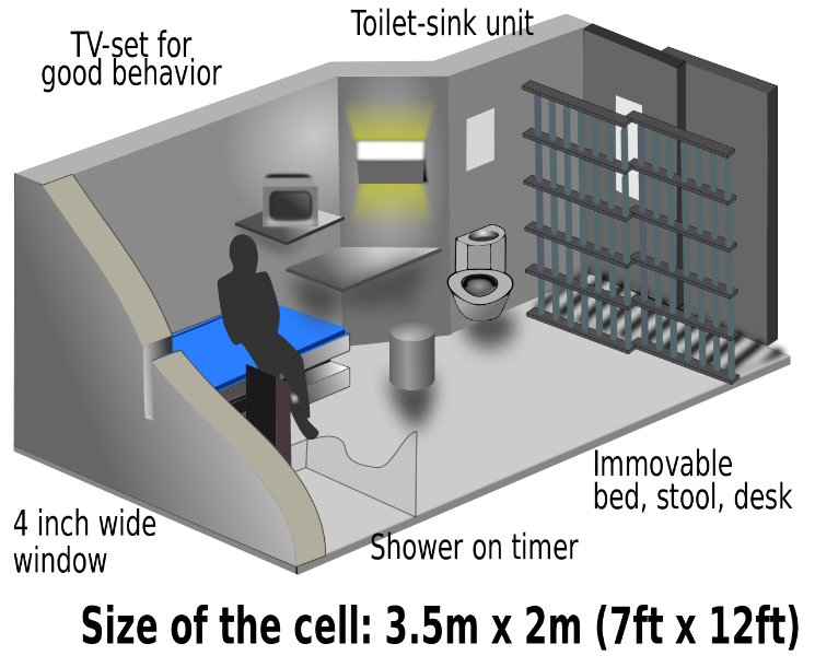 На фото: Роберт Ханссен; стандартная камера в тюрьме «Супермакс».