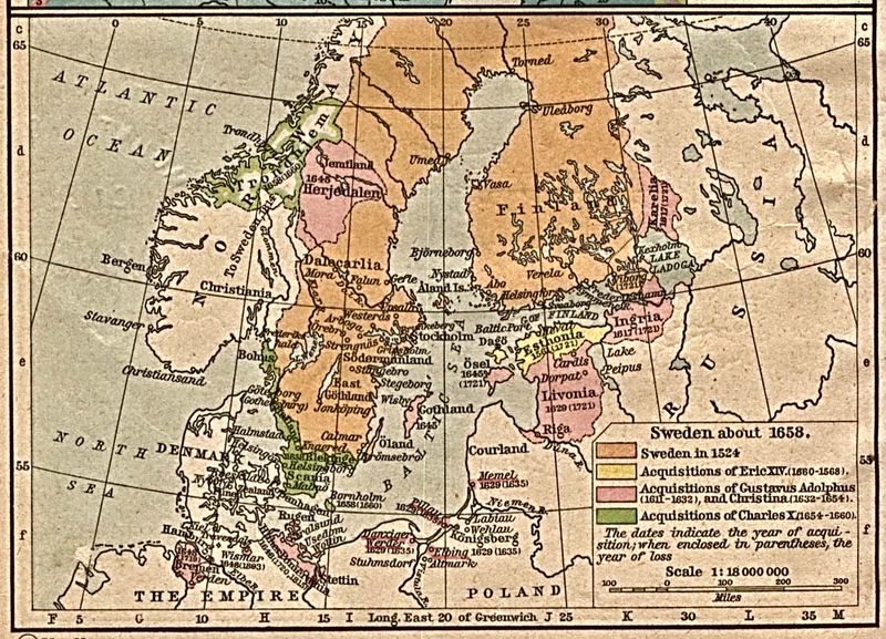 Добавим к этому также то, что за Швецией была закреплена значительная часть Скандинавии за исключением лишь Норвегией, считавшейся самой отсталой территорией в регионе и находившейся в зависимости от Дании. Таким образом, к началу XVIII века Швеция могла считать Балтийское море своей «лужей».