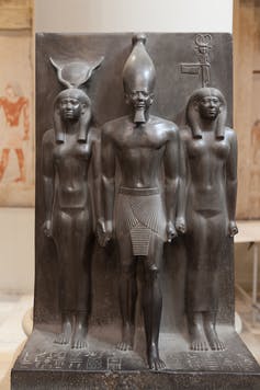 Эта история может быть связана с мифом о богине Хатхор, привлекательном и кокетливом божестве, которая смогла возбудить собственного отца – бога солнца Ра. Хатхор была любимой богиней Микерина: на скульптуре, хранящейся в Каирском музее, она изображена рядом с фараоном, одетая в такое тонкое платье, что оно кажется почти невидимым.