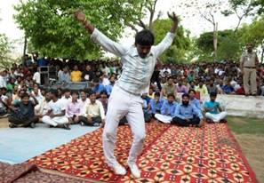 Затем на импровизированную сцену выходят участники группы Ska-vengers, очень популярной в многомиллионном Нью-Дели. Тысячная аудитория, состоящая из одних мужчин, буквально взрывается от аплодисментов и одобрительных криков, когда на сцену выходит любимица публики, звезда индийской песни Самара Шопра. Она поет в ритмах ска (1), регги (2) и соул (3), и ее песни никого, включая персонал, не оставляют равнодушными.