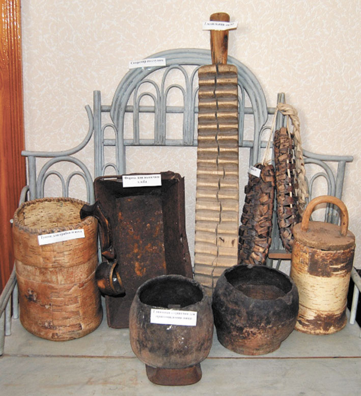 – В наш фонд утварь спецпереселенцев Устьвымлага попала из музея школы в поселке Вожаель. Местные ребята вели раскопки и в земле нашли эти предметы. Когда поселок прекратил свое существование, а школа закрылась, мы перевезли все к себе в музей, – продолжила свой рассказ Елена Анатольевна. – Рассматривая глиняные горшочки для приготовления пищи, форму для выпекания хлеба, прикроватный стол и стул, сделанные из лозы, гладильную доску, можно на мгновение окунуться в то время и представить себе, как жили спецпереселенцы.