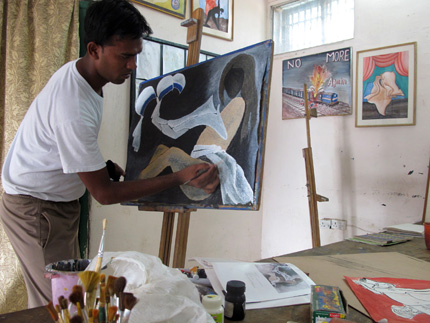 Рассказывает Мохаммед Фироз, бывший маляр, а ныне художник, создающий чудесные полотна: «В тюрьме № 3 "Тихара" я уже два года. Я жду суда по поводу самоубийства моей жены. Каждый день я рисую: четыре часа утром и один час вечером. Раньше я был маляром. Живопись я открыл для себя в тюрьме. Я обожаю современное искусство. Это позволяет мне выразить на холсте мои чувства. Мой любимый художник – Макбул Фида Хусейн******. Эта картина, которую я сейчас рисую, является репродукцией его произведения, называющегося "Мать Тереза"».