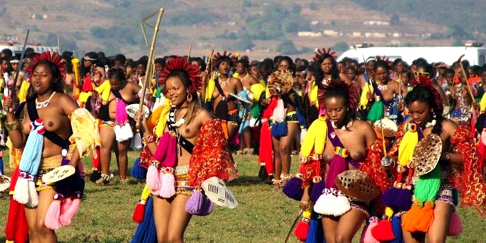 В южной части Африки до сих пор проходят парады невест, называемые «танцами с тростником». Хотя правильнее было бы эти парады назвать ярмарками. Это гигантская церемония, в которой участвуют тысячи девственниц. Они танцуют, выставляя напоказ голую грудь, чтобы мужчины могли выбрать себе понравившуюся.