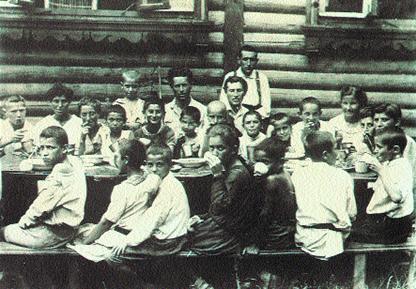 М. Шагал со своими учениками в колониидля сирот в Малаховке. 1920