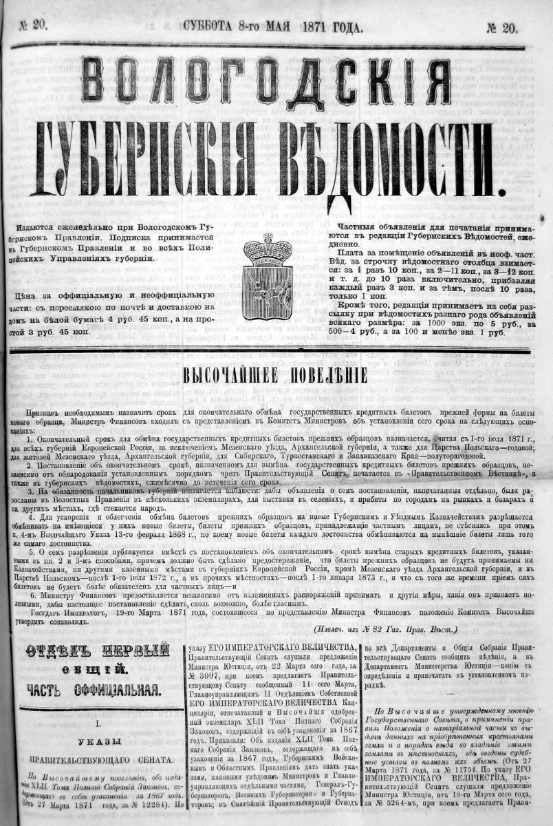 Начал он с официальных и респектабельных «Вологодских губернских ведомостей». Потом просмотрел «Вологодский