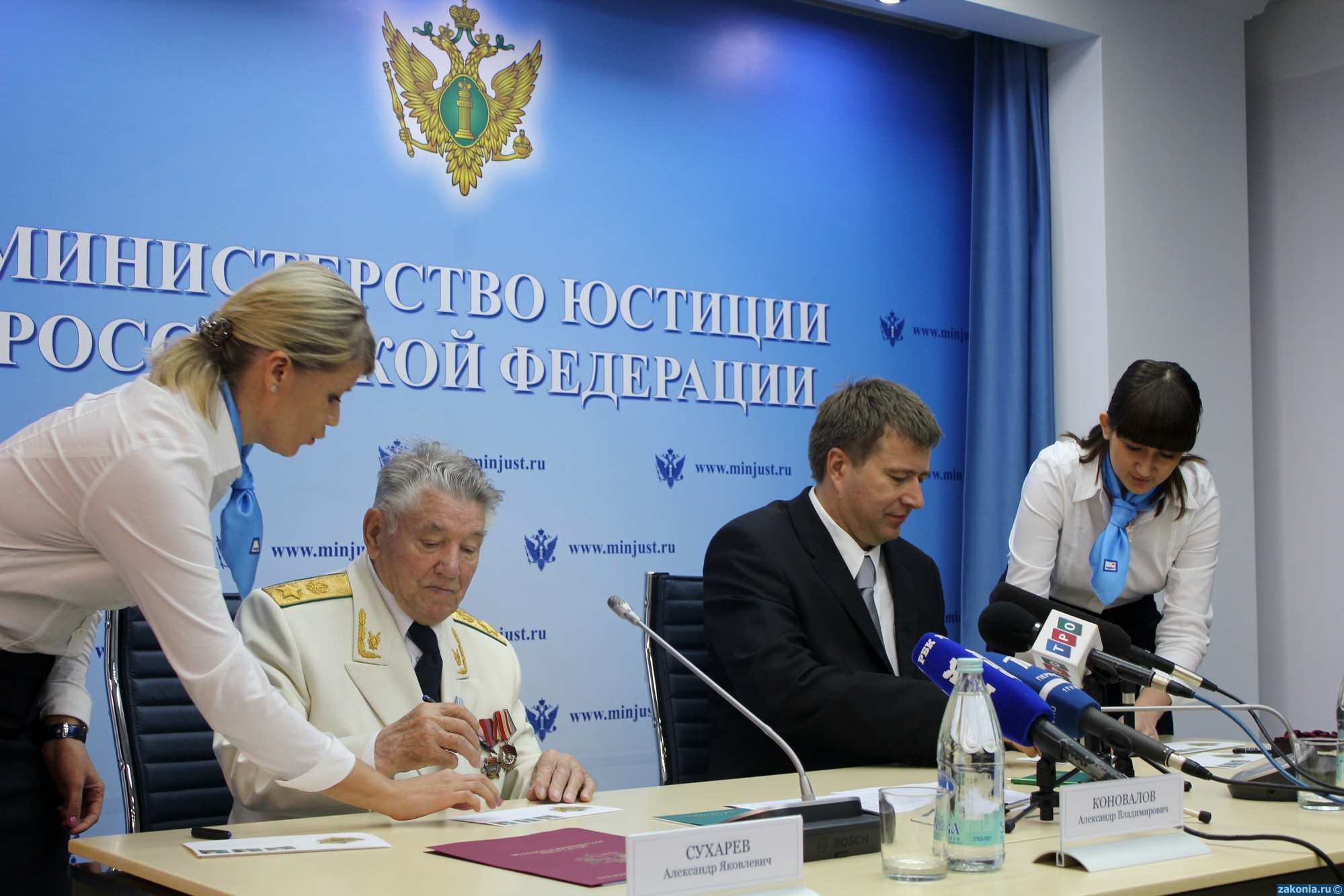 В ходе торжественных мероприятий Министр юстиции Александр Коновалов и бывший министр юстиции РСФСР Александр Сухарев приняли участие в церемонии памятного гашения трех почтовых марок – первых в серии «Выдающиеся юристы России». Марки посвящены Гавриле Державину, Михаилу Сперанскому и Анатолию Кони. Филателисты в самое ближайшее время смогут приобрести новую серию марок в отделениях почты России.