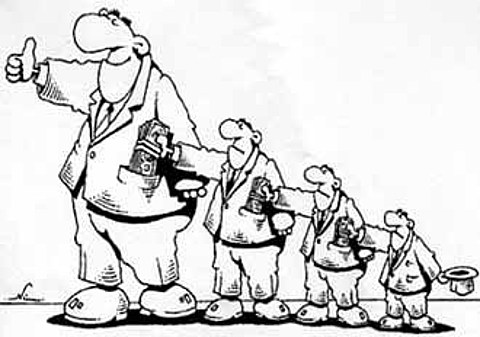 ИВАН: Я сейчас поясню, как я представляю, чтобы это всё действовало. Предлагаю обратиться к историческому опыту Петра I, который, можно сказать, довольно неплохо боролся с коррупцией. Он ввел такую должность как фискалы. Это были люди, ну в общем-то, из общества, которые находили где-то взяточника, и они получали вознаграждение за донос. Поэтому я предлагаю таким же способом.